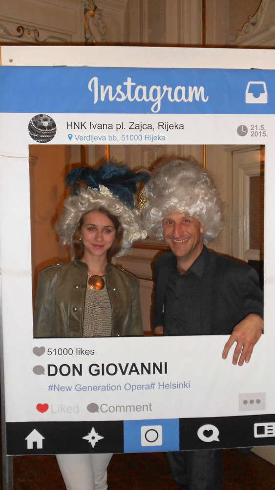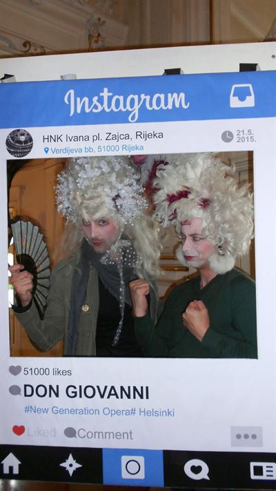 Prije početka izvedbi opere „Don Giovanni“, posjetitelji su se u atriju kazališta  mogli fotografirati u „Instagram okviru“ s baroknim perikama iz operne predstave te svoju fotografiju postaviti na službene Facebook i Instagram profile kazališta. Posjetiteljima su se pridružili i članovi zbora te ravnatelj Opere HNK Ivana pl. Zajca Marin Blažević.